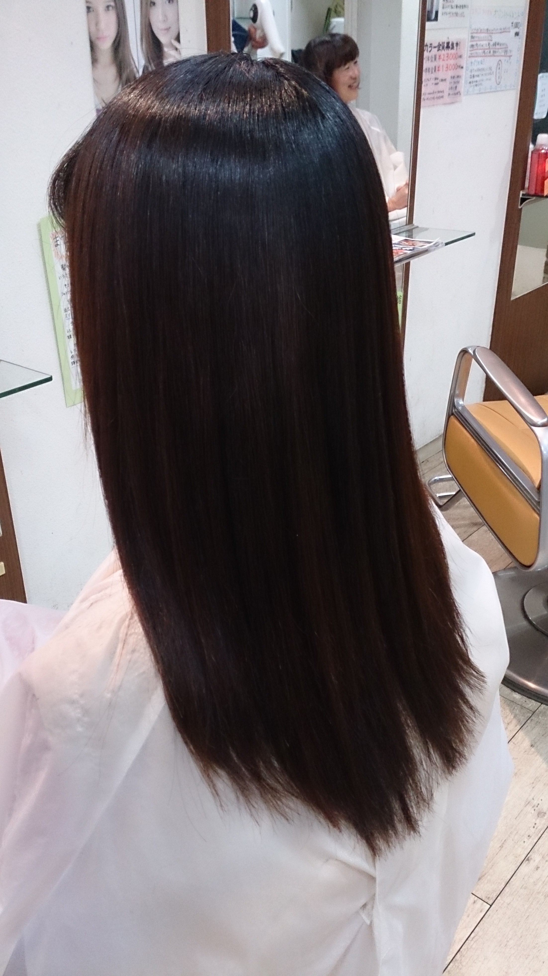 施術後です。根元のうねりが綺麗に伸びて、艶が出ました(*^_^*)